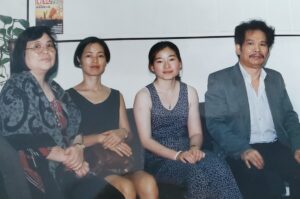 ‧作者黃琉在香港《開放》月刋工作期間(約在1989年),陪同編輯同事、資深記者、著名作家蔡咏梅(左一,著有巨著《周恩來的情感世界》)、編輯同事黃寶蓮((左二,是台灣女作家),在編輯部會見民運老將徐文立的女兒 (右二)。