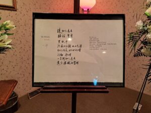 一平是一个极善良、温和、谦逊内敛的人。2001年我们和散居世界各地的以中文写作的诗人作家创立了“独立中文笔会”,举起自由写作的旗子。一平是这个新组织的注册代理人,是最早的理事和财务秘书。在种种内部纷争中,一平是“粘合剂”,总是主持公道而又待人宽厚,因此得到诗人作家们的普遍敬重。一平很喜爱爱尔兰诗人叶芝的一句诗:“诗歌把诅咒化为葡萄园”,他心中没有怨恨而惟有爱。不仅仅是宽广的人类之爱,而且是邻人之爱,对具体人的爱。他的诗歌就是葡萄园,他的生命也化作了神所喜悦的葡萄园。他骤然离世,文友们莫不震惊、悲伤,现任笔会会长诗人蔡楚老泪纵横。刚才我看到笔会秘书长杨子立先生匆匆从马里兰赶来。——本来作为笔会的主要创立者和前会长,我是想代表文友们表达哀悼之情的。现在正式代表来了,带着笔会的悼词和花圈。