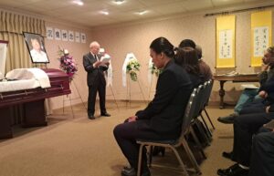 2025年1月5日,一平告别与追思仪式在哀思涕·蒙罗与法海殡仪馆(Estey Munroe & Fahey Funeral Home)举行。灵堂陈列着一平生前生活与工作的图片集锦、他出版的作品集、亲人、中美两国友人以及伊薩卡城市文化保護机构和独立中文笔会敬献的花环与挽联。在肃穆安详的气氛中,一平的亲人、中美友人、独立中文笔会代表(杨子立先生)和伊萨卡城市写作机构同仁先后发言,回顾一平生命历程,缅怀一平人格,展示一平作品,朗读一平诗歌,总结一平精神遗产,哀悼一平早逝,祝愿他天堂安息。