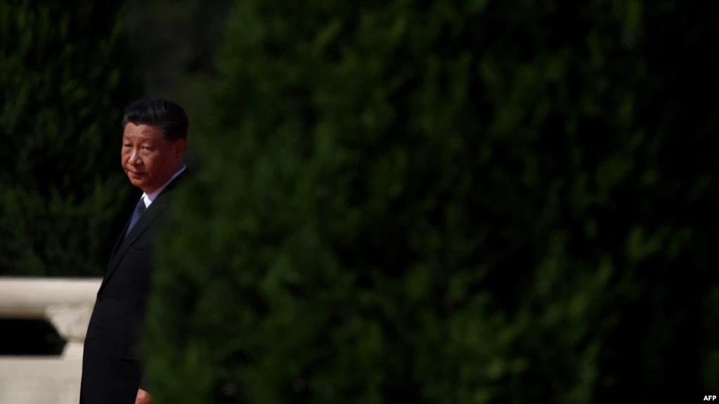 中国领导人习近平在天安门广场举行的献花仪式中走向人民英雄纪念碑。(2020年9月30日)