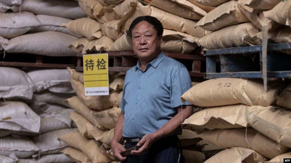 资料照:中国河北养猪农民孙大午在饲料仓库里 (2019年9月24日)