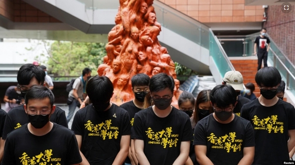 香港大学的学生在悼念六四死难者的“国殇之柱”前向死难者默哀。(2021年6月4日) 香港 — 象征悼念六 […]