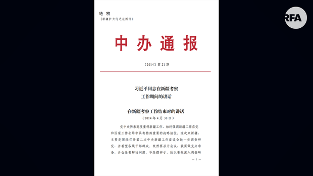 这些此前未公开的文件,纪录中国领导层在 2014 年的讲话内容,包含三篇中国国家领导人习近平在2014年发表的讲话,内容涉及安全、人口控制与惩罚维吾尔人的必要。部分文件标有“机密”、“绝密”字样。在这些文件中,中共高层领导人呼吁维吾尔人进行再教育和搬迁,以解决新疆维吾尔族和汉族人口之间的不平等问题。