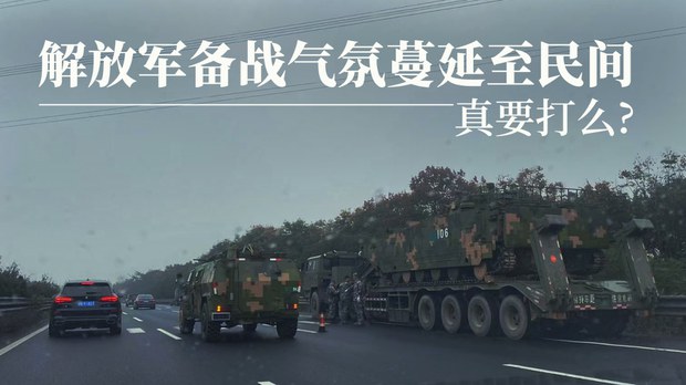 近期,中国军方频繁进行针对台湾的军事演习,甚至将这种备战行为扩大到民间。据新浪微博@央视军事10月28日发布东部战区陆军防空旅实弹演练的视频,在警报声中:“我们全体部队按因上级命令,转入一级战备, 筹划组织向预定作战地域,机动集结。我决心全旅坚决贯彻上级决心意图……。”