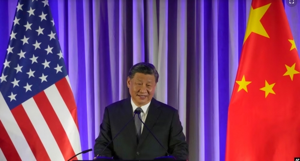 资料照片:中国国家主席习近平在旧金山出席亚太经合组织峰会期间与美国商界领袖共进晚餐时发表讲话。(2023年11 […]