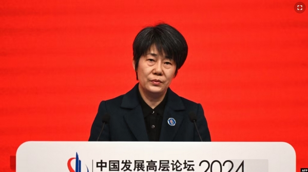 中国商务部副部长郭婷婷2024年3月25日在北京举行的中国发展高层论坛(CDF)2024上发表演讲。