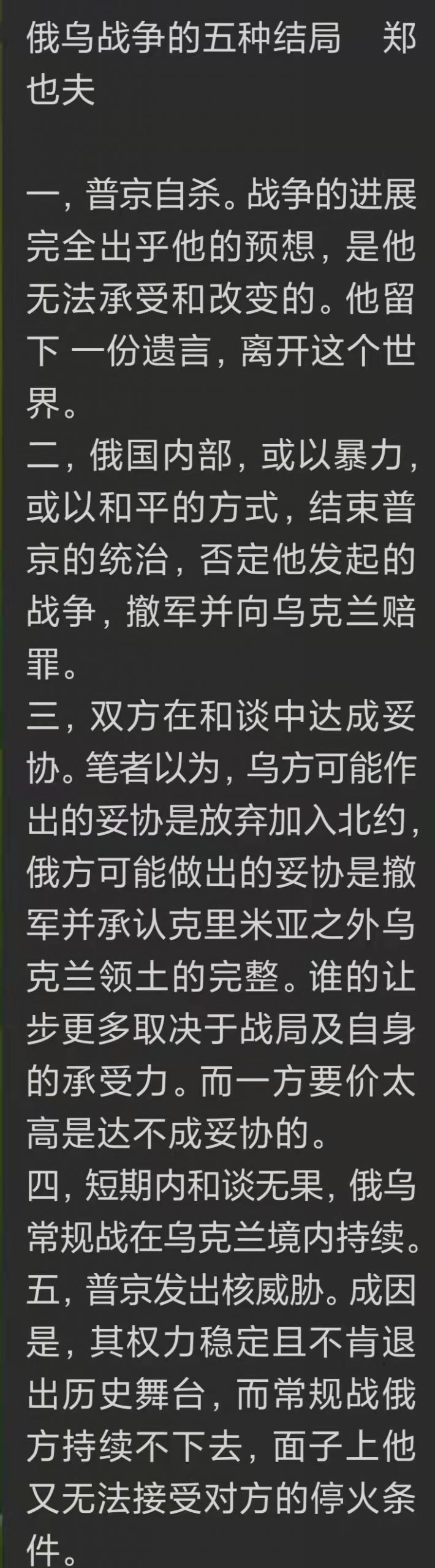 编者按:本文是郑也夫教授对俄乌战争结局的五种预测。(本刊首发)
